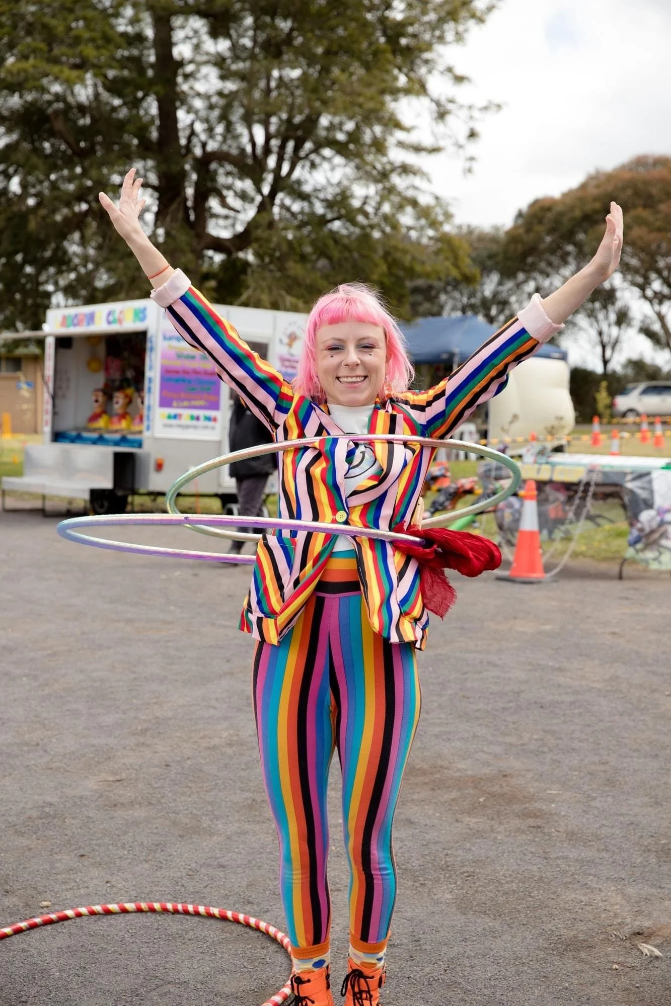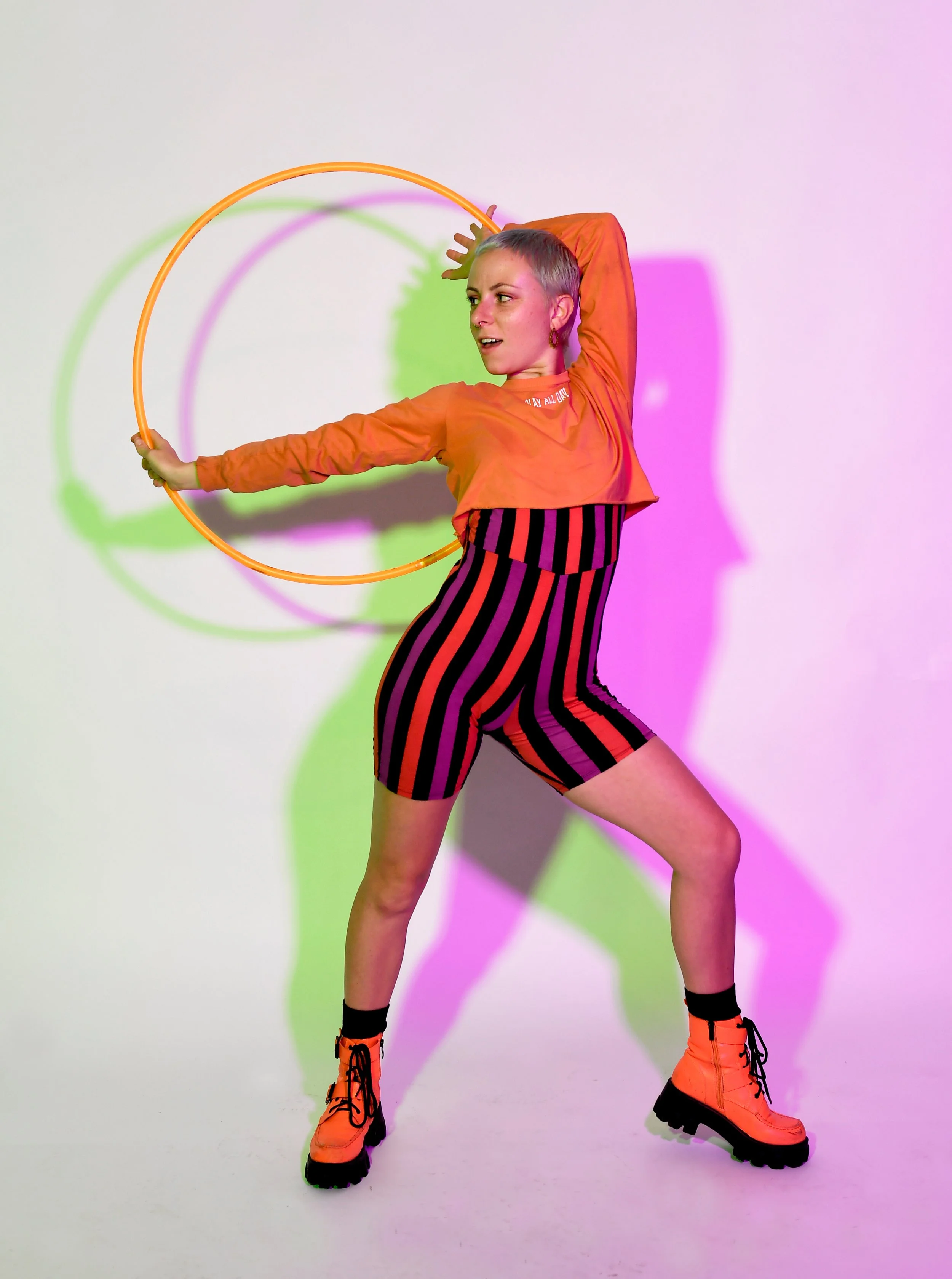 Internationally recognised for her skilful style bursting with sass, Miss Olive Dip is an eclectic performer whose movement speaks strengths in musicality, power, expression, and mesmerizingly theatrical entertainment. A professional performer of 7 years, Miss Olive Dip has entertained and taught hula hooping across Europe, America, Australia , Asia, across the pacific ocean on P&O Cruises and now calls Naarm (Melbourne, Australia) home.